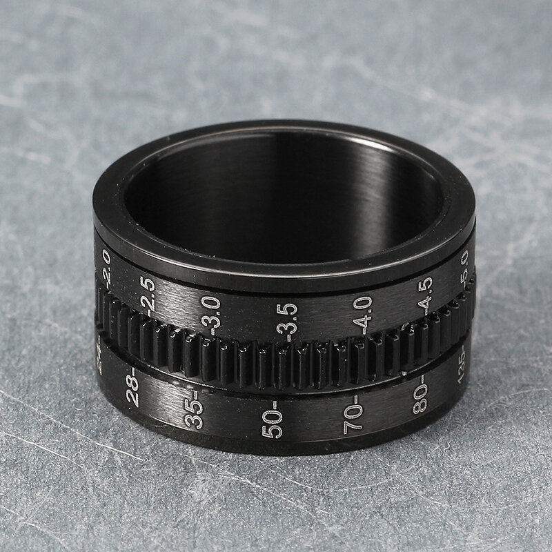 • 12mm Titanium Steel Black 316L Anel de dedo de aço inoxidável Spinner Lente da câmera Focus Ring Men Ring