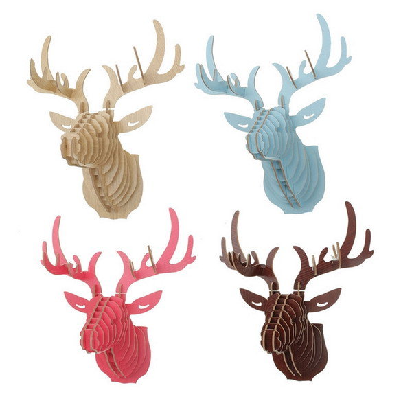 • 3d cabeça parede de madeira alces enforcamento ofício modelo diy animais selvagens animais para decoração de casa