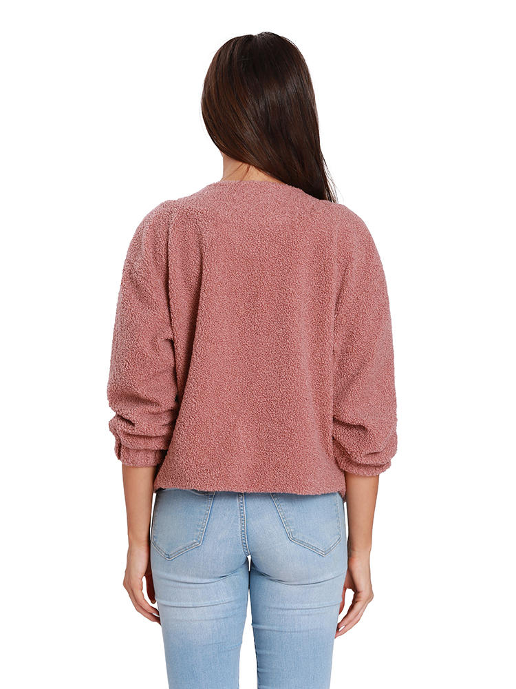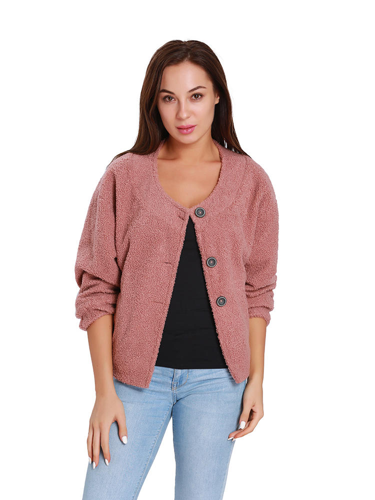 Casacos de manga longa de botão de lã de cor sólida de mulheres casuais COD