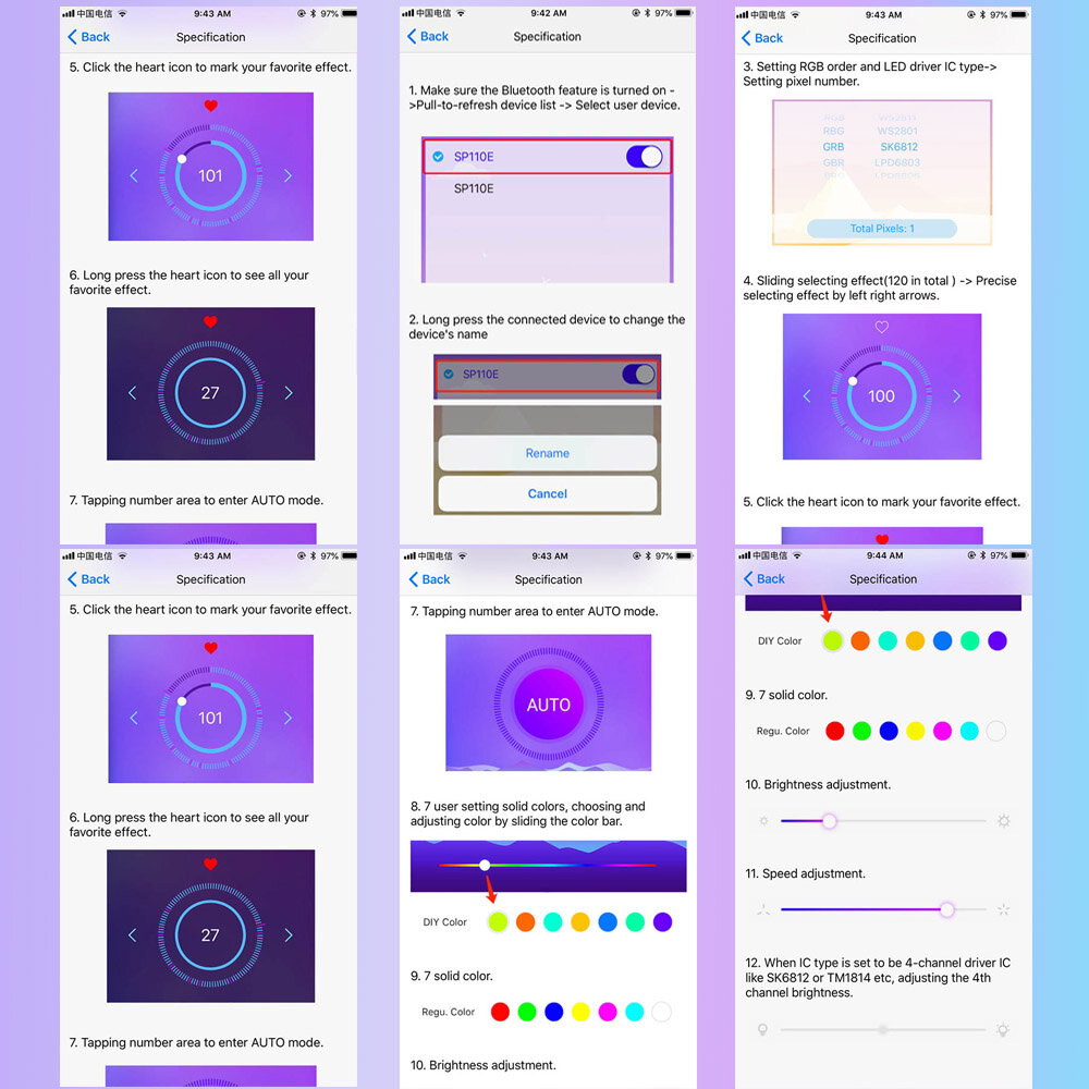 App Control via Bluetooth 4.0, longa distância de controle, conveniente de usar;