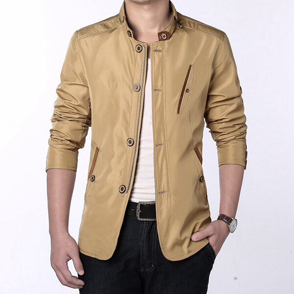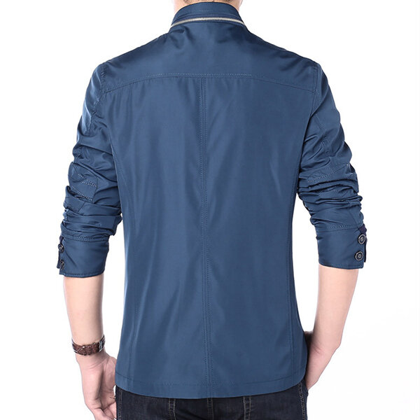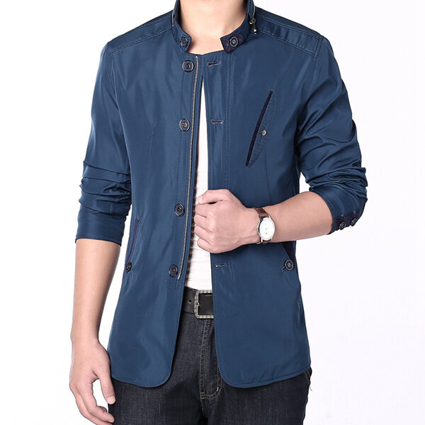 • Jaqueta Masulina Fina Moda Casual Negócios Botões e Zíper Gola Média Personalidade