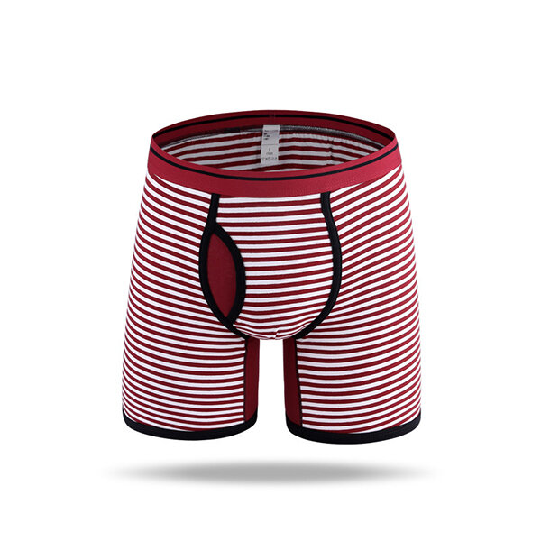 Sport riding stripes impressão de algodão meados de subida u bolsa convexa long boxers para homens
