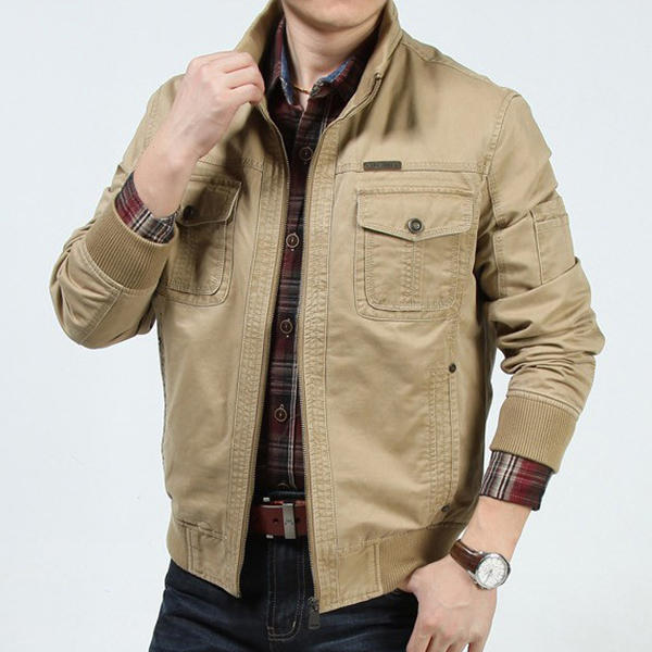 Mens Military Cotton Wearable Chest Pockets Zipper Outwear Jacket