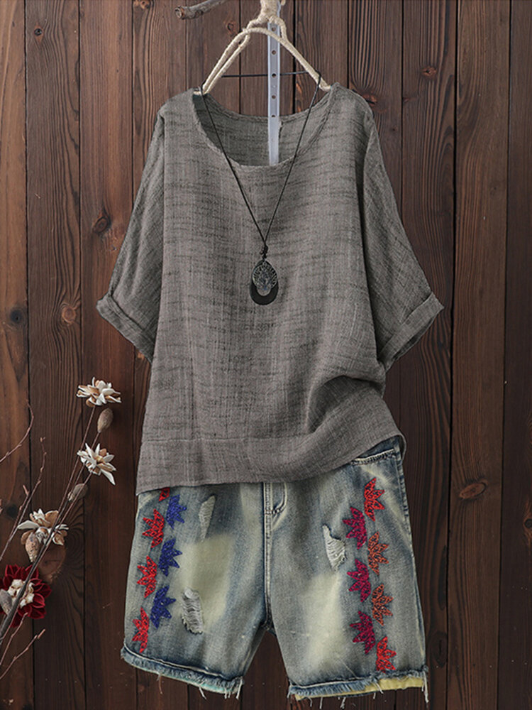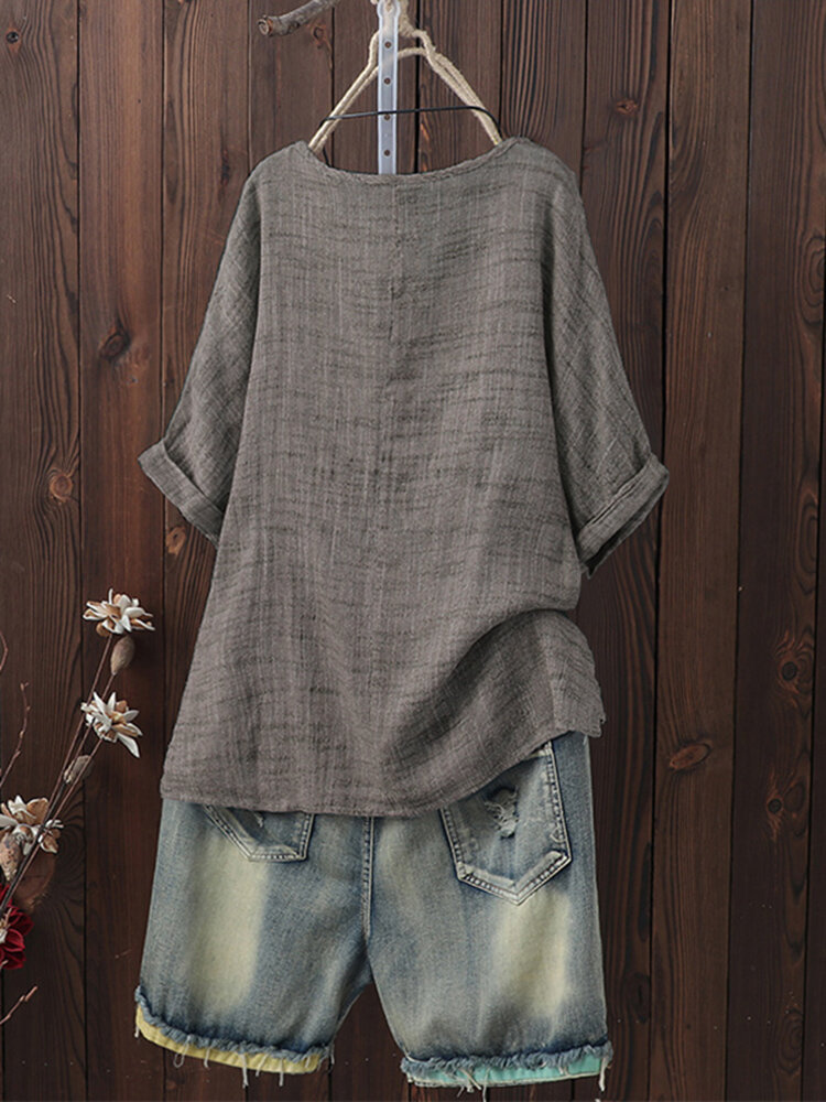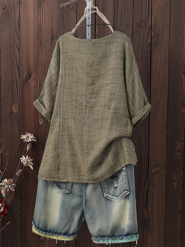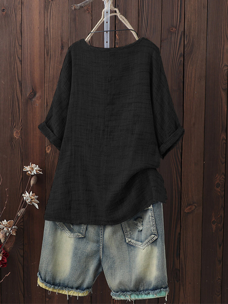 Plus Tamanho Vintage em torno do pescoço manga 3/4 Blusa Mulheres COD