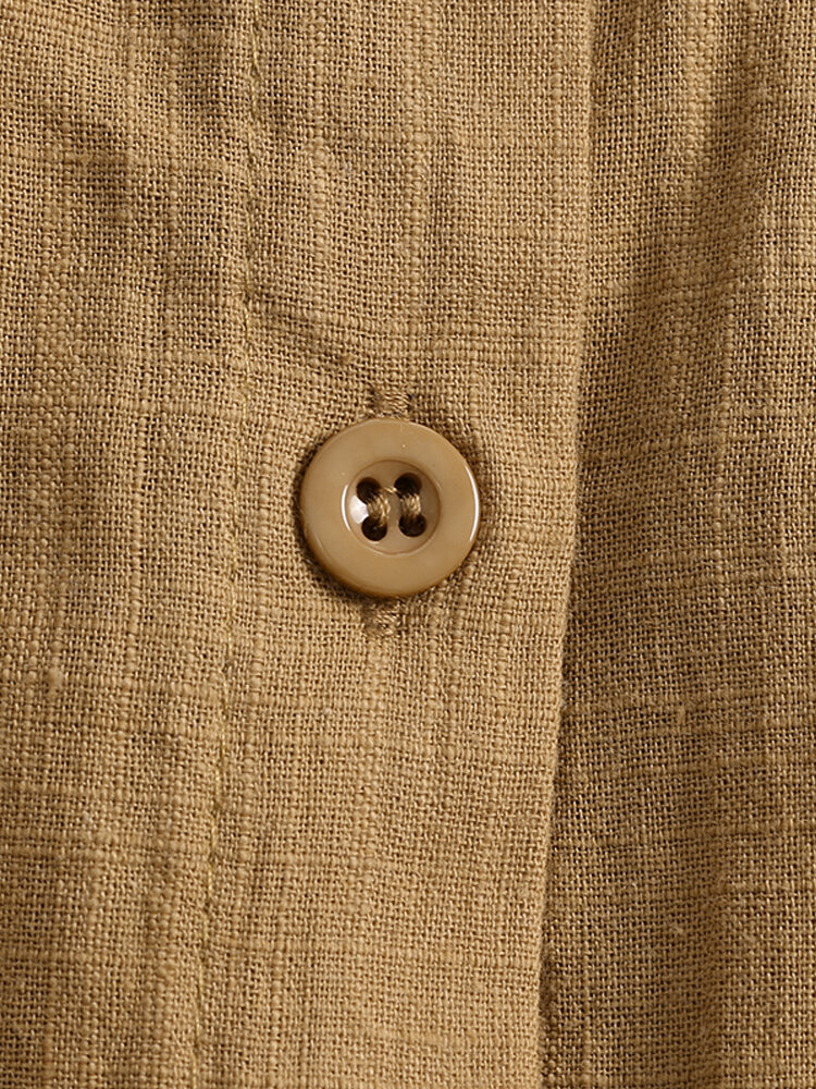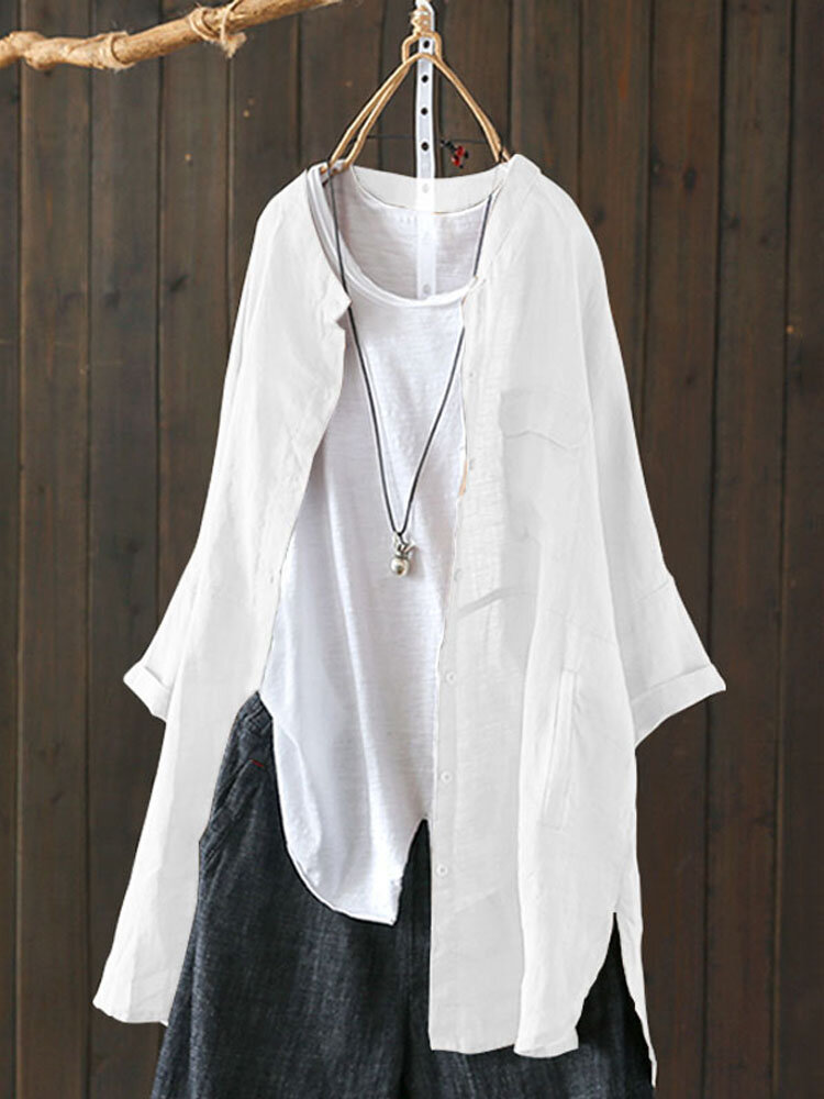 S-5XL Mulheres Botão de Manga Comprida Para Baixo Algodão Assimétrico Blusa Vintage COD