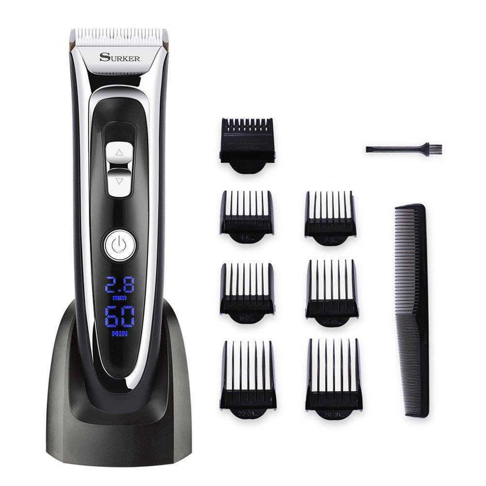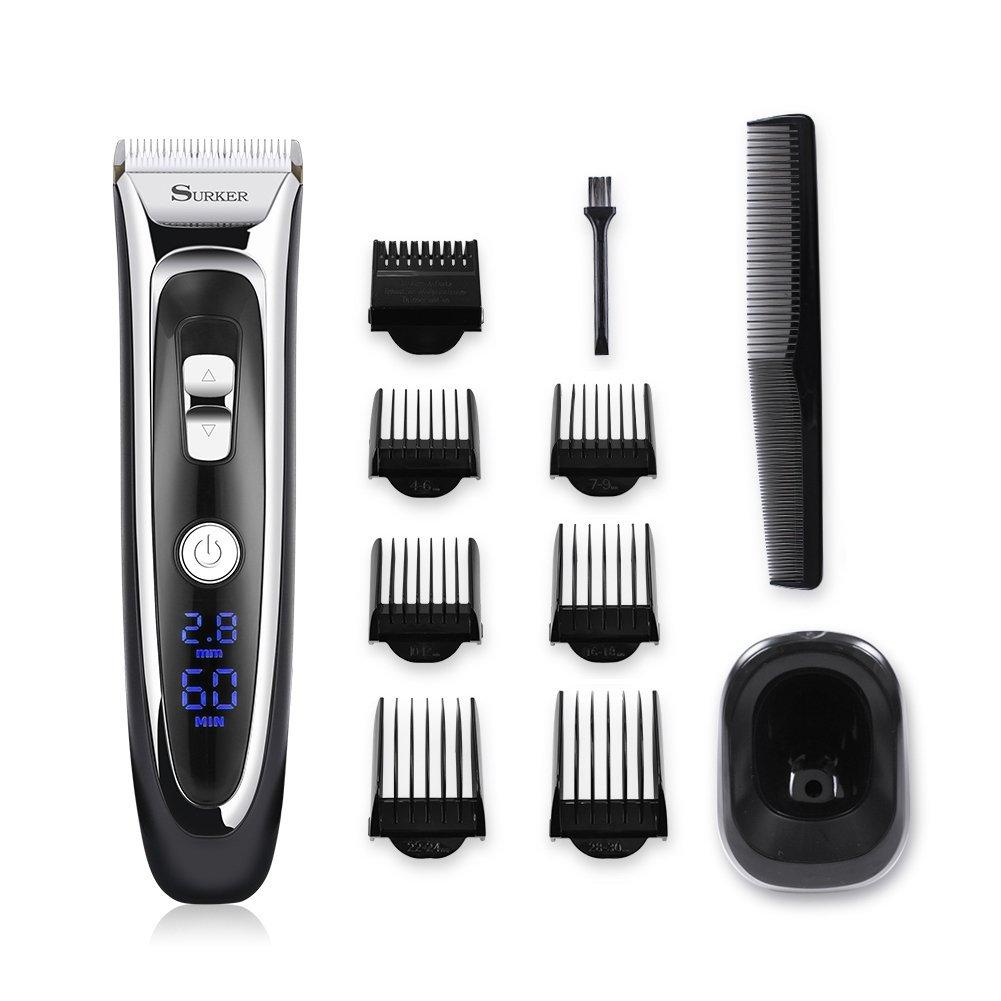 • SURKER Barbeador Aparador de Corte de Cabelo Recarregável sem Fio Lavável LED Exibição Lâmina em Cerâmica