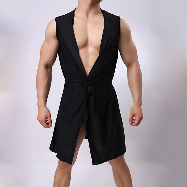Sexy de Seda De Gelo Soft Fino Confortável Meados de Longo Sem Mangas Com Capuz Sleepwear Robes Roupão de Banho com Cinto