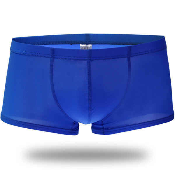 Sexy Transparente Thin Ice Silk Elastic Soft respirável Low Rise Boxers Underwear para homens