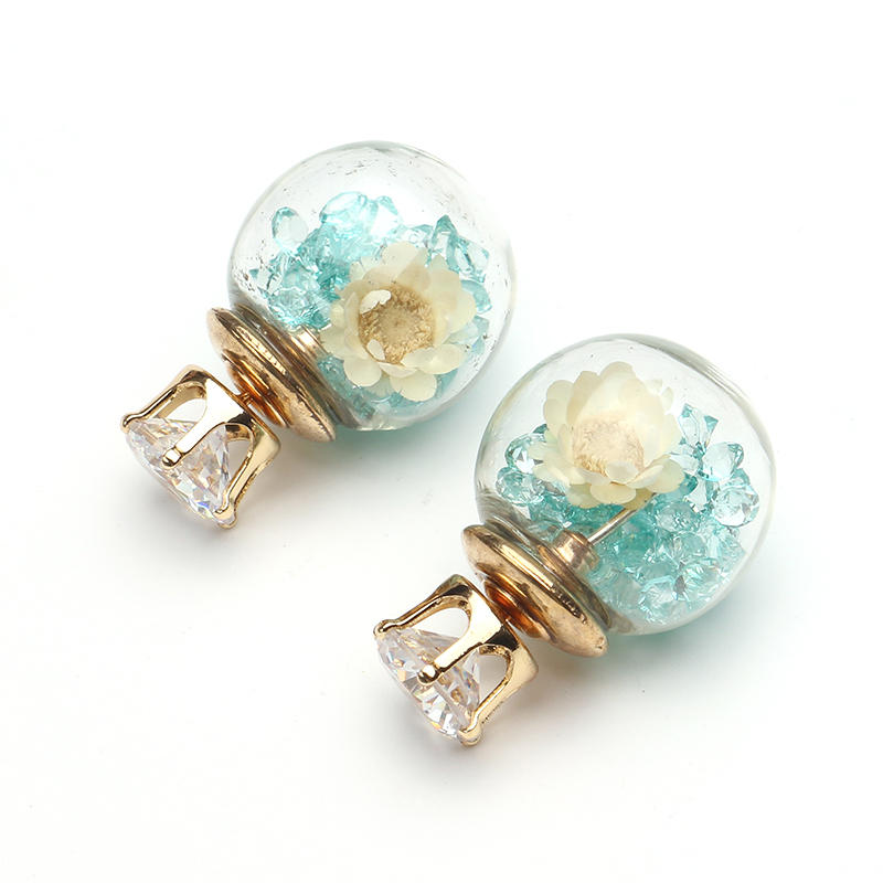 Trendy colorido cristal bola de vidro flor rodada brincos