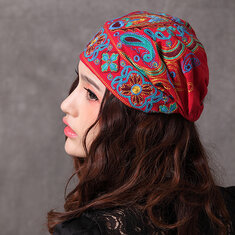 Mulheres Navy Beanie Caps Ethnic Bordado Skullcap Chapéu