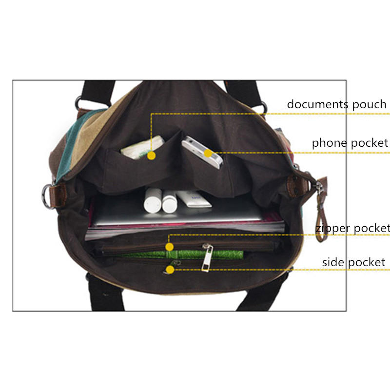 • Bolsa na Transversal Feminina Casual Alça de Canvas Bolsa de Mão de Couro de Microfibra Bolsa de Ombro de Cor do Contraste