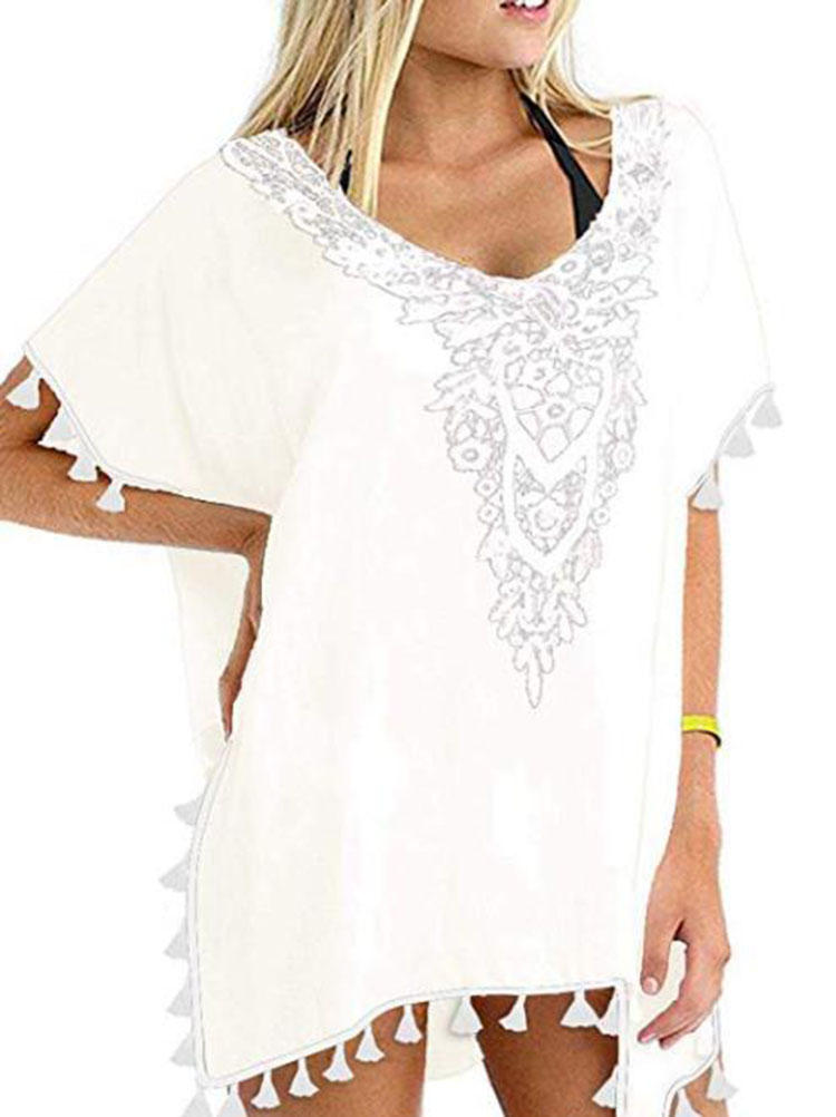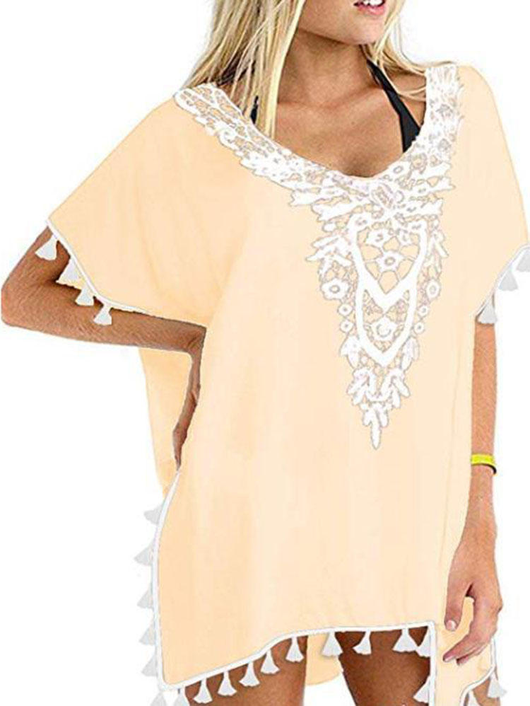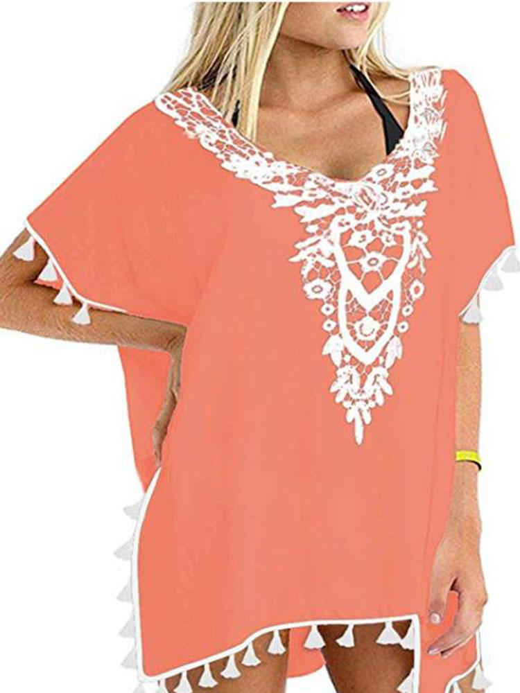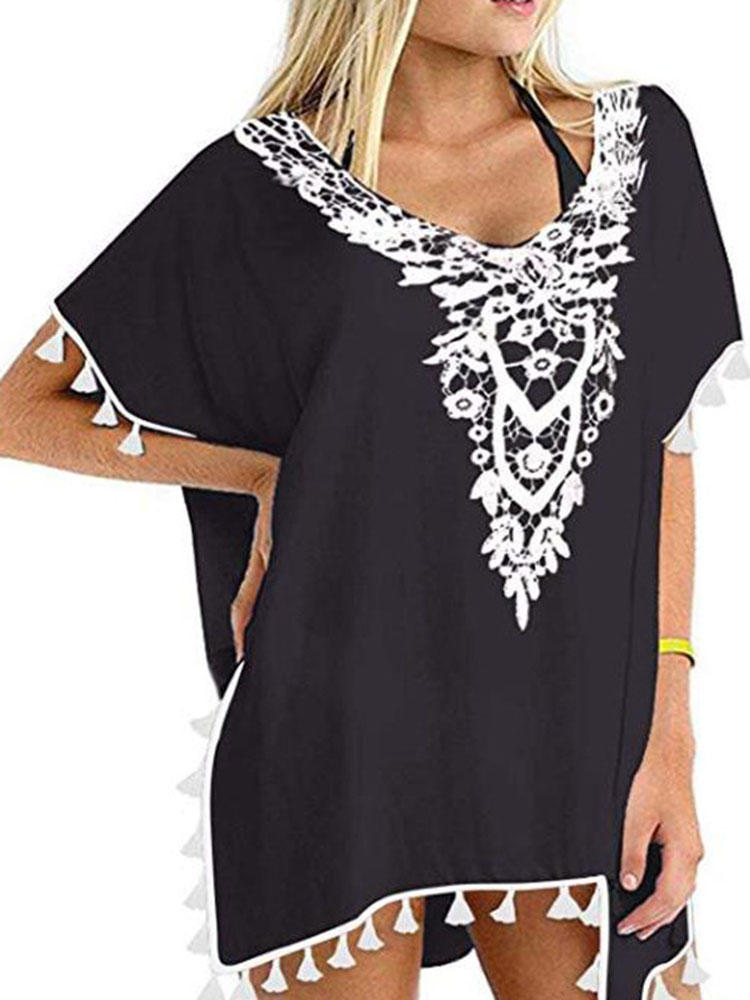 • Mulheres Crochet Chiffon Tassel Praia Cover Ups para Swimwear
