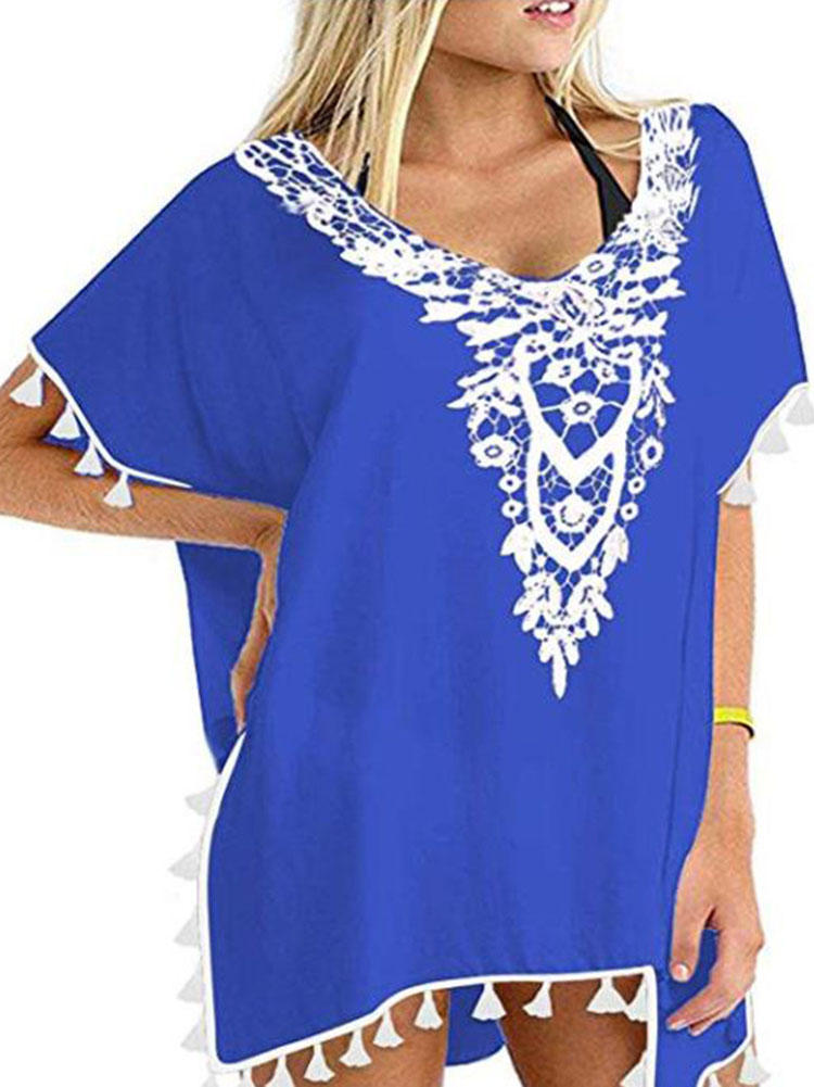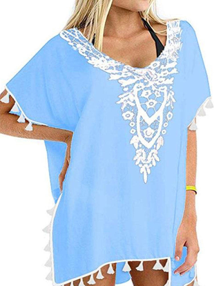 Mulheres Crochet Chiffon Tassel Praia Cover Ups para Swimwear