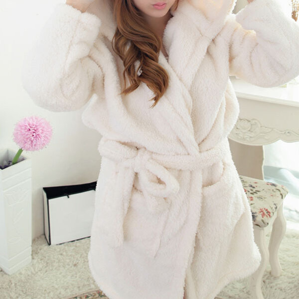 • Mulheres Men Comfy Hooded Bathrobe Thicken Coral Velvet Lovely Animals Robes