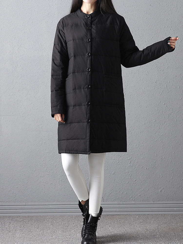 Mulheres Inverno Quente Preto Longo Manga Botão Mid Longos Casacos