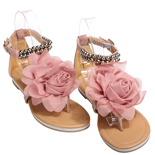 Flor de Tecido Chiffon Flats T Correias Sandálias Praia Tênis COD